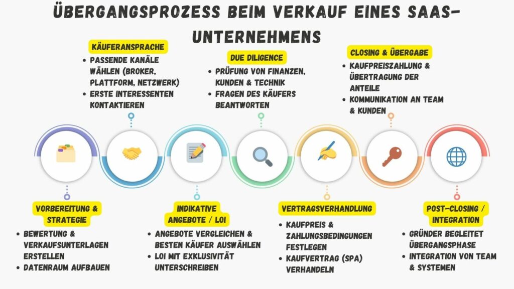 Die Übergangsphase nach dem Verkauf ist bei SaaS-Unternehmen besonders kritisch, da Produktwissen, Kundenbeziehungen und technisches Know-how übertragen werden müssen.