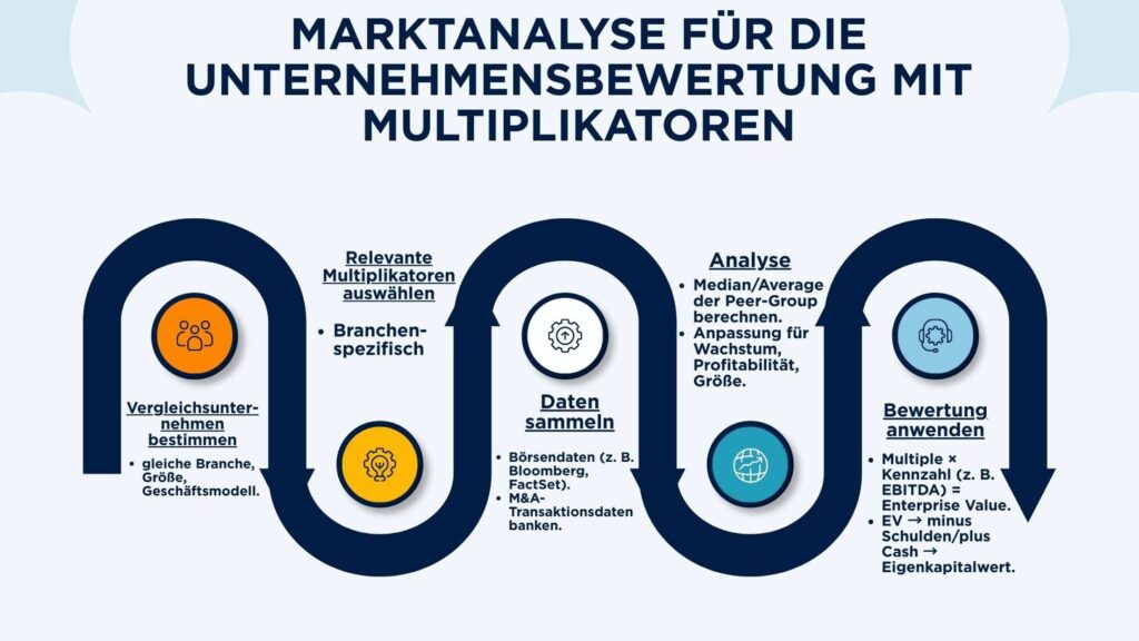 Die Höhe der Multiplikatoren wird durch verschiedene Marktfaktoren beeinflusst. Eine fundierte Marktanalyse ist daher unerlässlich, um den passenden Multiplikator für Ihr Unternehmen zu ermitteln.